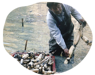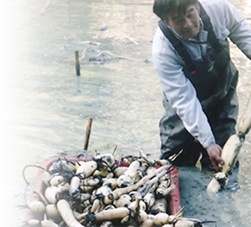 収穫した蓮根は、名物の"サラダ蓮根寿司"や漬け物として提供中ですので、