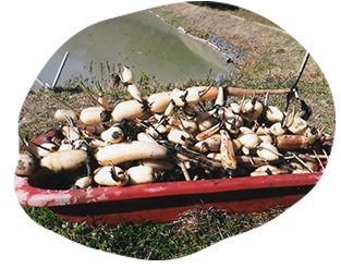 収穫した蓮根は、名物の"サラダ蓮根寿司"や漬け物として提供中ですので、